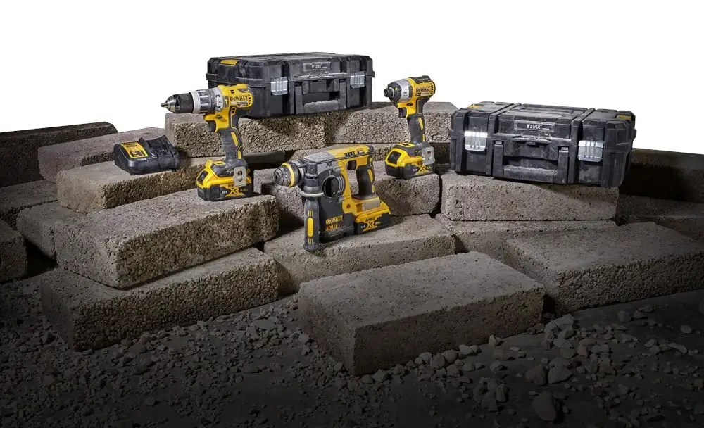 • De set bevat het volgende: Borstelloze Boorhamer, Compacte Borstelloze Boorhamer, Borstelloze Slagschroevendraaier, 2x TSTAK II-kitdozen