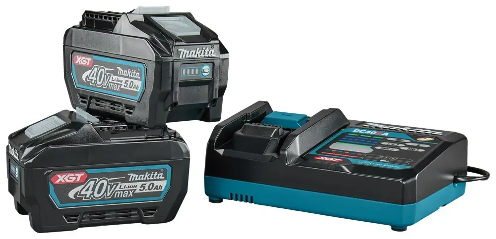 De machines, accu’s en oplader van het XGT-platform zijn standaard voorzien van elektronica, waardoor deze met elkaar kunnen communiceren. De oplader geeft de meest geoptimaliseerde oplading aan de accu afhankelijk van de status van de accu. Ook de machine reageert direct op de status van de accu. Afhankelijk van de status van de accu wordt de stroomtoevoer naar de machine geoptimaliseerd. Daarnaast is de accu gebouwd om zware omgevingsomstandigheden te weerstaan, zoals water en stof. Ze hebben een robuuste constructie, zijn beschermd tegen stof en ze hebben een spatwaterbestendig ontwerp. Kortom, een accu waar je op kunt bouwen. Startset met twee accu’s BL4050F (40 V Max, 5,0Ah) en snellader DC40RA.