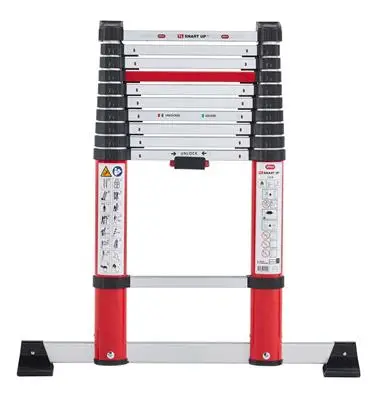 Smart Up Go. 11-treeds. Werkhoogte ca. 320 cm. Uitgeschoven lengte 420 cm. Opberglengte 85 cm. Gewicht 11,8 kg. Anti-slip. Stabilisatiebalk. Rubberen doppen voor muurbescherming.