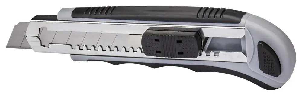 Makita afbreekmes met kunststof behuizing. Handig afbreekmes voor veelzijdige toepassingen zoals het snijden van karton of vloerbedekking. De mesjes zijn eenvoudig af te breken als ze versleten raken. Het blad heeft een dikte van 0,5mm en een hoogte van 18mm. Het afbreekmes wordt geleverd inclusief 7 reservemessen. De reservemessen bevinden zich aan de achterzijde van het mes. Naast het grijze afbreekmes heeft Makita tevens een blauwe variant beschikbaar onder artikelnummer: D-65713.