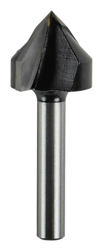 Hardmetalen V-groeffrees. Geschikt voor het kopiëren van snijwerk, graveerwerkzaamheden, verfraaiingen in massief hout, lijmhoudende houtsoorten zoals MDF, spaanplaat en kunststoffen. Makita v-groeffrees 19mm 90gr voor hout. Deze frees heeft 2 beitels en past in een 6mm spantang.