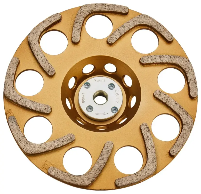 Makita anti-vibratie 180 mm diamant komschijf met segmenten in de vorm van een waaier. Deze vorm heeft een hoge efficiëntie. Voor een medium afwerking van een oppervlak van beton en diverse steensoorten. Alleen geschikt voor de 180 mm haakse slijper met SJS, SJSII of softstart. Het gewicht van de komschijf is dermate hoog dat deze bij het starten van de machine teveel belasting geeft op de tandwielen van een haakse slijper. SJS, SJSII en softstart voorkomen deze belasting.
